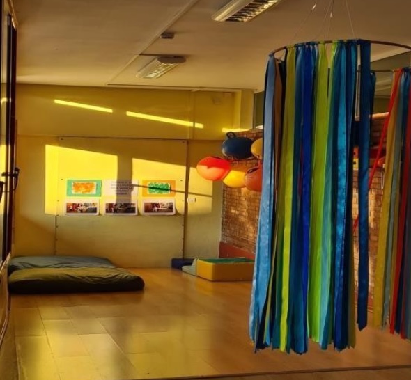 Gli spazi del nido sono progettati in continuità educativa tra interno ed esterno. All’interno sono presenti ambienti dedicati all’accoglienza, al movimento, al gioco simbolico, alla lettura, alle attività espressive e scientifiche, oltre agli spazi per il pranzo, il riposo e la cura quotidiana. Le proposte educative valorizzano anche l’esplorazione di materiali naturali e di oggetti di riciclo e riuso creativo.